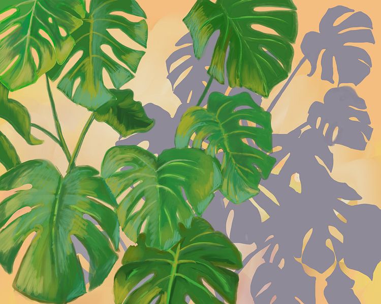 How beautiful is the green of the hole plant, but also the play of light and shadow gives peace and space. The colours let the sun shine in your interior.