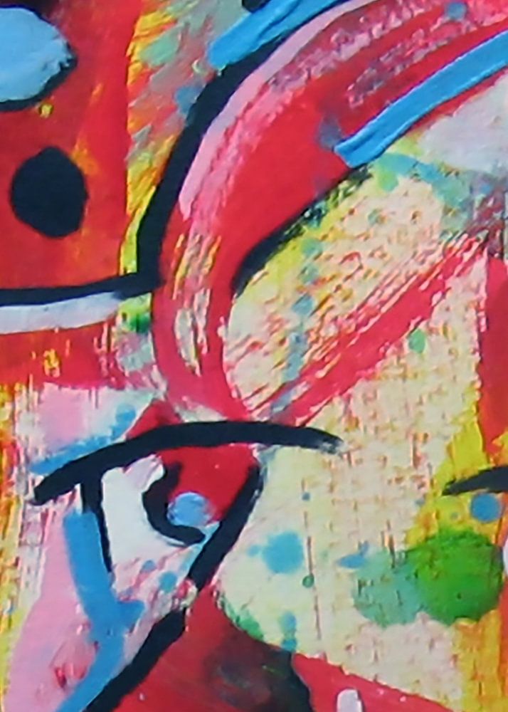 Painting in expressive colours. Emotion in variegated bright colour and line. Astonishment and shock.