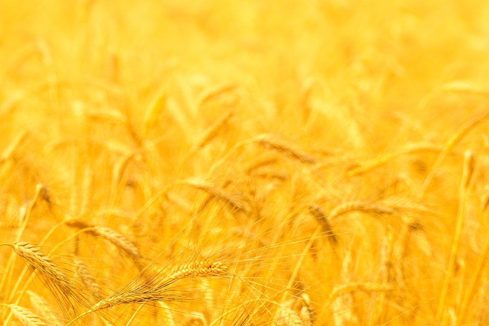 Close op of a golden yellow wheat field with during summer in the Provence, France.