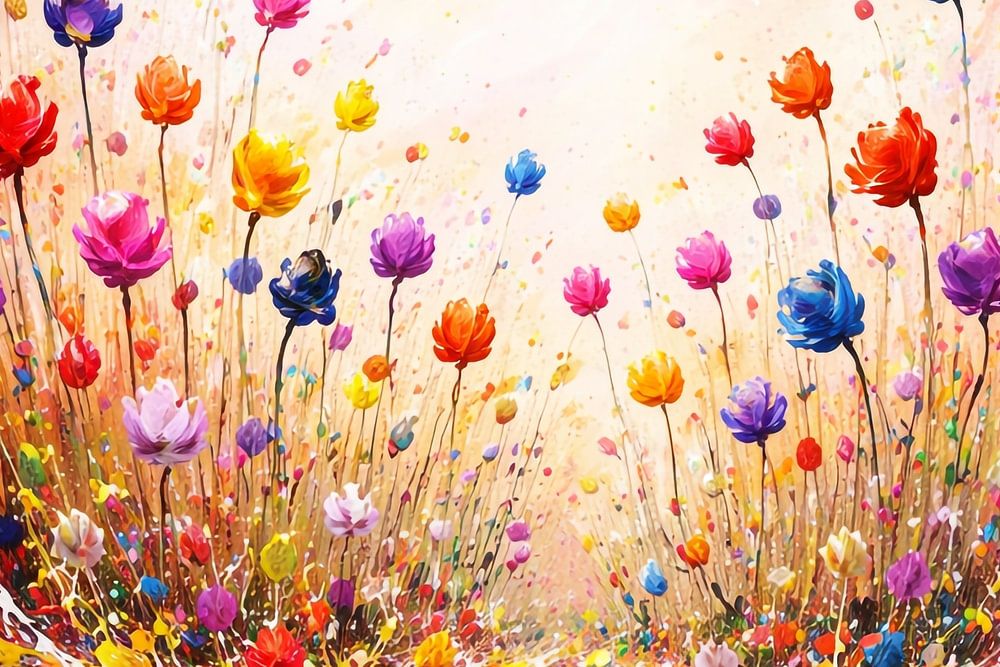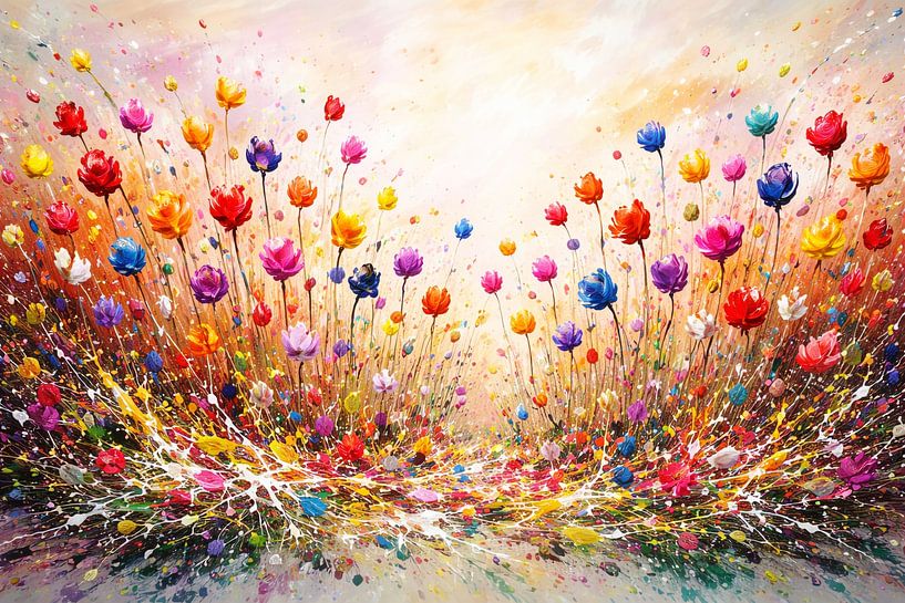 This flower series was created as an abstract, expressive interpretation of a field of flowers. Instead of a realistic depiction, the focus is on colour, movement and emotion. The individual blossoms are deliberately simplified and almost sculptural, while the background consists of dynamic, sometimes wild colour structures.