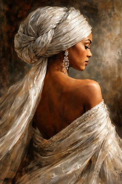 The woman, depicted in half profile, wears her silence like a cloak. Layers of translucent fabric envelop her body and head, not to hide but to preserve. The averted gaze creates distance and intimacy at the same time: she is present but elusive. The work talks about dignity, identity and inner strength. Here, strength is not expressed,…