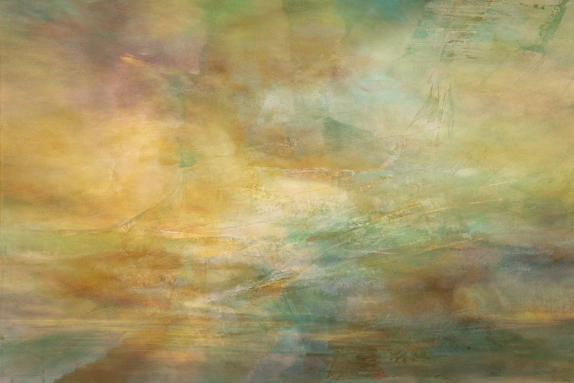 Buy this abstract artwork Where golden light wanders by Annette Schmucker on canvas, ArtFrame, poster and wallpaper, printed on demand in high quality.