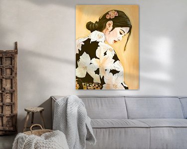 'Whispers of Asia' is more than just a traditional portrait; it's a celebration of Eastern elegance and a serene statement piece for any modern home decor seeking a touch of sophistication and calm. Ideal for collectors of Asian-inspired art, fine art prints, cultural portraits, or unique wall art that evokes peace and beauty.