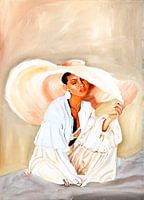 This hand-painted piece is perfect for living room decor, bedroom art, or as a focal point in a tranquil meditation space. Bring the contemplative charm of this beautiful woman painting into your collection.