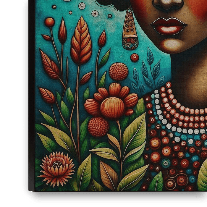 I have captured a moment of calm connection in my painting - the portrait of a woman, her gaze steady and unyielding, meeting yours with a forthright strength. She encourages you to take a moment, be in the moment and see the world as she does. Around her, you see delicate flowers and soft foliage, symbolising growth and renewal. This…