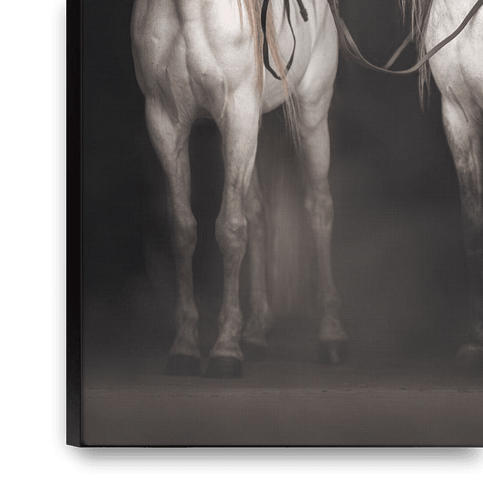 Buy the photo White Spanish stallions with traditional harness | White horses | horse photography by Laura Dijkslag on canvas, ArtFrame, poster and wallpaper, printed on demand in high quality.