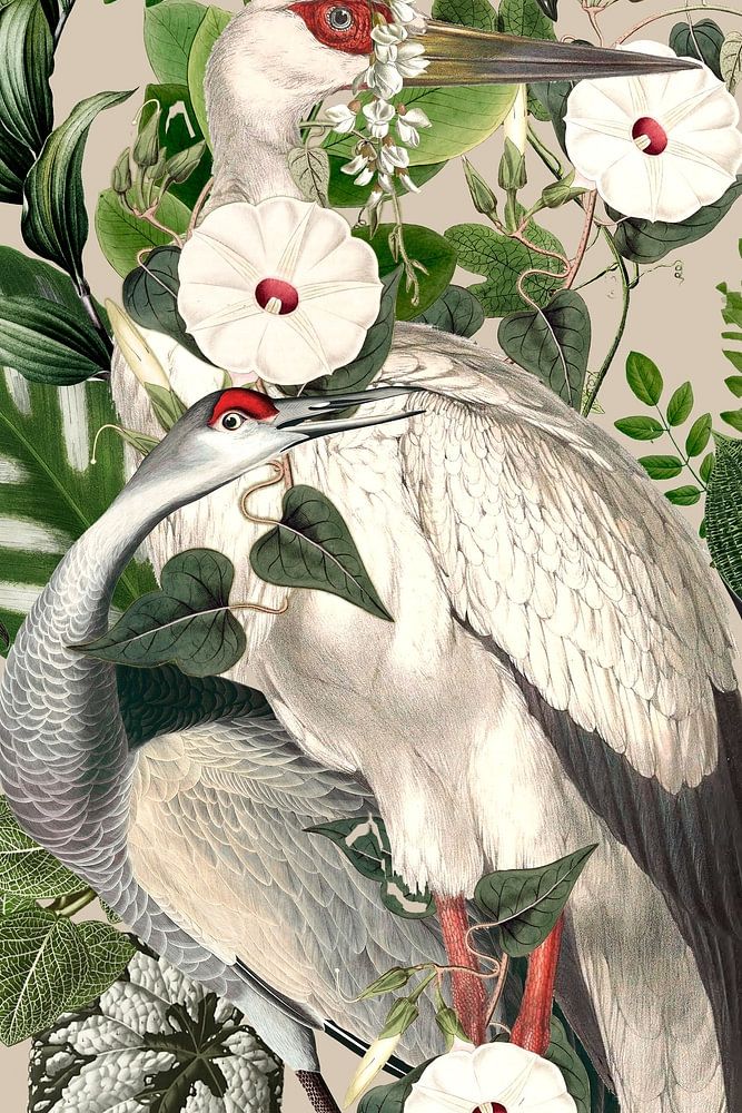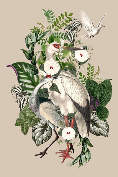 A Collage of Botanical Elements. Digital editing with Stork, Pigeon, Ipomoea tendrils and leaves.