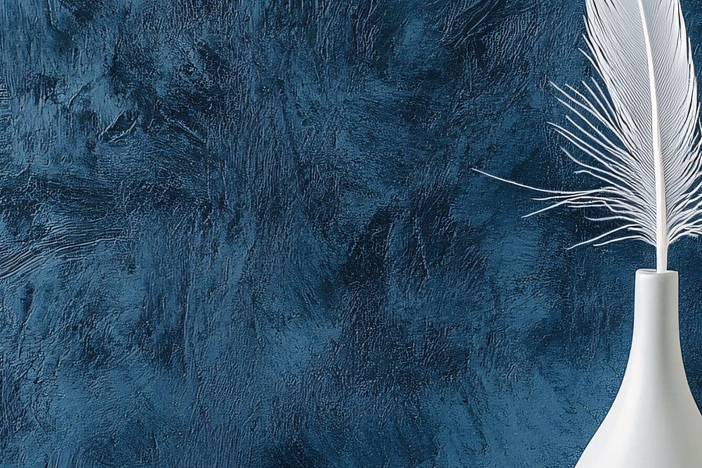 This stylish composition brings together simplicity and sophistication. The minimalist design, featuring a slim white vase and an elegant white feather, exudes tranquillity and harmony. The dark blue tones of the background create a beautiful contrast to the light colouring, giving the whole piece a sense of modernity and class. Perfect as a backdrop for a modern interior or as inspiration for creative spaces. The design offers a timeless aesthetic that transforms any space into an oasis of style and serenity. Ideal for lovers of minimalist art.