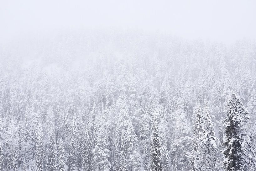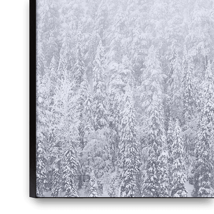 A hushed winter landscape in which snowy pines slowly dissolve in the mist. The soft tones and layered depth give the picture a serene, almost dreamy atmosphere. 'White landscape' invites peace and reflection and brings a calm, timeless elegance to any room - perfect for those who want to feel the power of simplicity and…