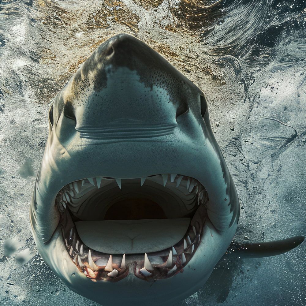 Buy the photo White shark in attack by DNH Expressions on canvas, ArtFrame, poster and wallpaper, printed on demand in high quality.
