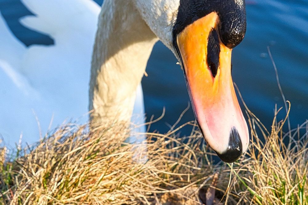 Buy the photo White swan, mute swan, on the water. by Martin Köbsch on canvas, ArtFrame, poster and wallpaper, printed on demand in high quality.