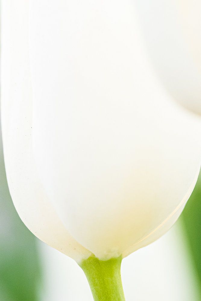 Detail photo of white Dutch Tulips in a Dutch bulb field with a soft gradient and fresh natural colours. Spring photo with details of spring in the northeast and Flevo polder.