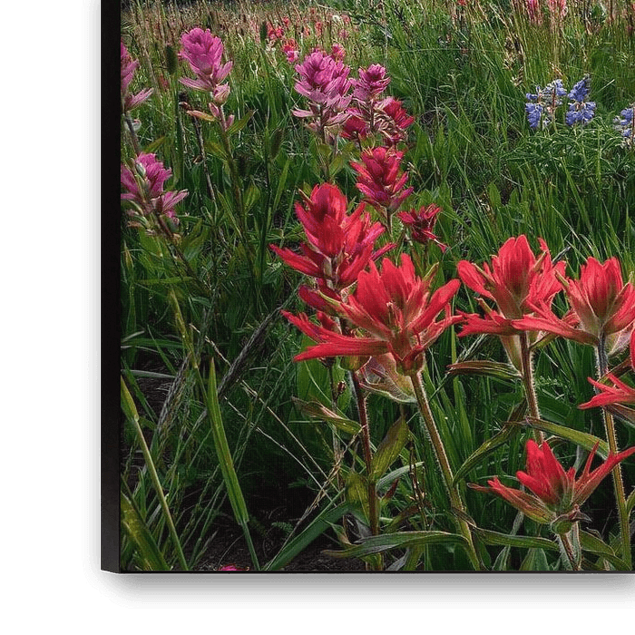 Photo of a beautiful sunset and Indian Paintbrush Wildflowers in the White River National Forest in Colorado.