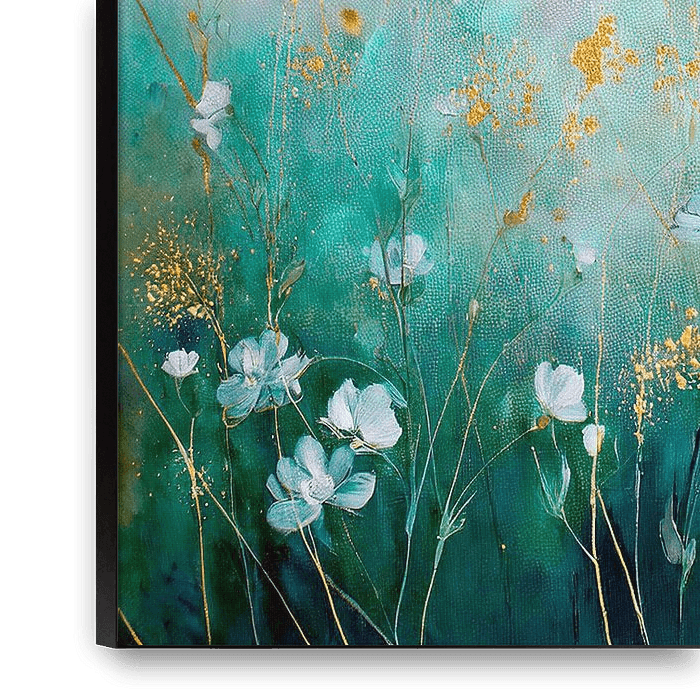 Abstract watercolour art with the freshness of turquoise and the warmth of gold accents.