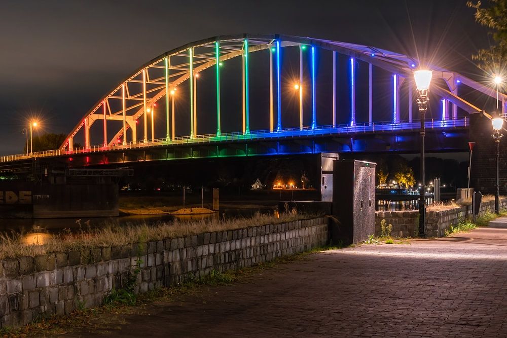 Buy the photo Wilhelmina bridge in rainbow colours in Deventer by Maurice Meerten on canvas, ArtFrame, poster and wallpaper, printed on demand in high quality.