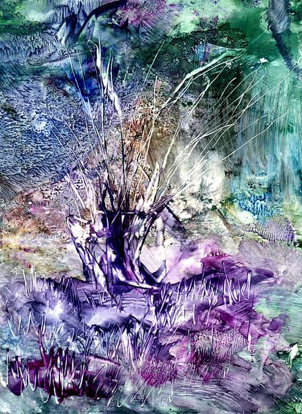 abstract grasses and branches in mixed media