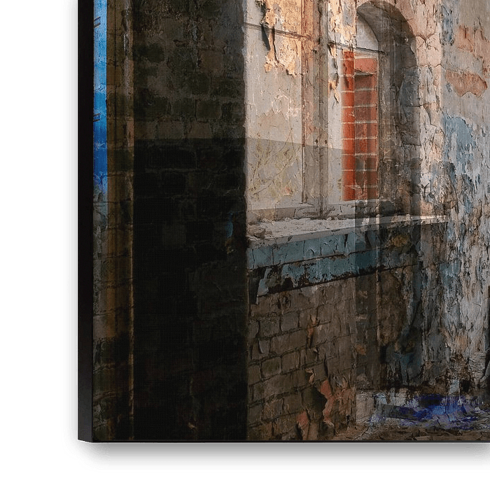 Multilayer photographic work, based on a corridor in the former hospital Beelitz-Heilstätten in Germany.