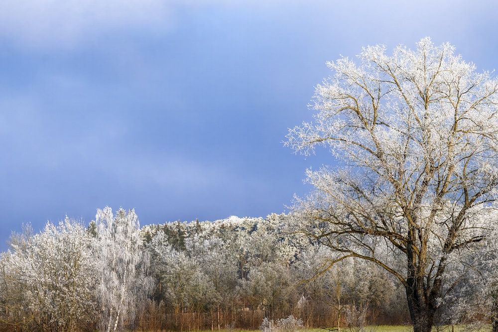 Winter landscape near Schrobenhausen with trees covered in frost