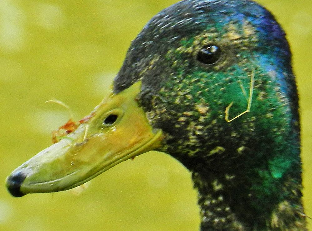 Deze mannetjeseend is gefotografeerd op de Zaanse Schans in Zaandijk. Hij kwam net uit een met eendenkroos gevulde sloot gekropen