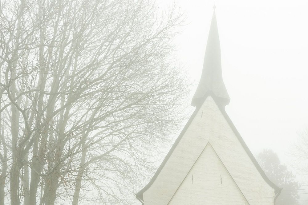 Woestijkapel in Gooik in the fog by Marcel Derweduwen