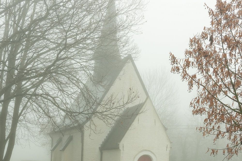 Woestijkapel in Gooik in the fog by Marcel Derweduwen