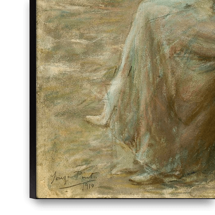 Buy Woman Embroidering, José Júlio de Sousa-Pinto as a reproduction on canvas, ArtFrame, poster and wallpaper, printed on demand in high quality.