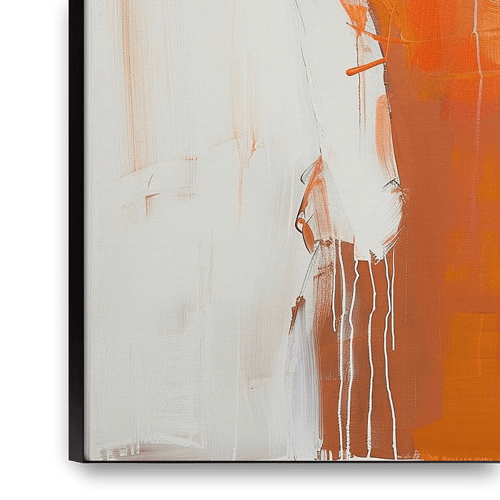 Woman Orange - This woman painting shows a woman in an orange dress, whose colours and lines evoke a sense of movement and expression, with a soft, light background highlighting the woman.