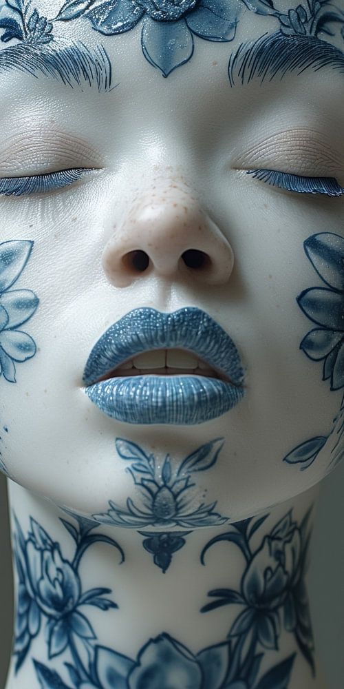 Buy this digital art artwork Woman in delft blue by Bert Nijholt as a reproduction on canvas, ArtFrame, poster and wallpaper, printed on demand in high quality.