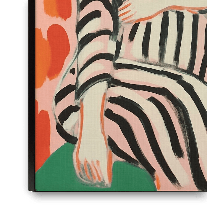 Buy this portrait Woman in new Matisse-inspired striped pyjamas by Frank Daske | Foto & Design on canvas, ArtFrame, poster and wallpaper, printed on demand in high quality.
