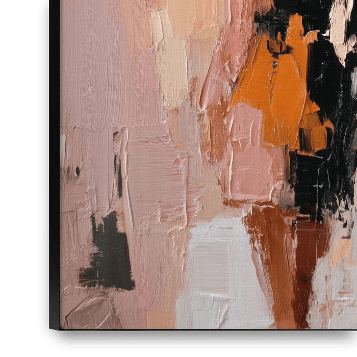Buy this abstract artwork Woman in warm colours | Abstract painting by Lauren Wilde on canvas, ArtFrame, poster and wallpaper, printed on demand in high quality.