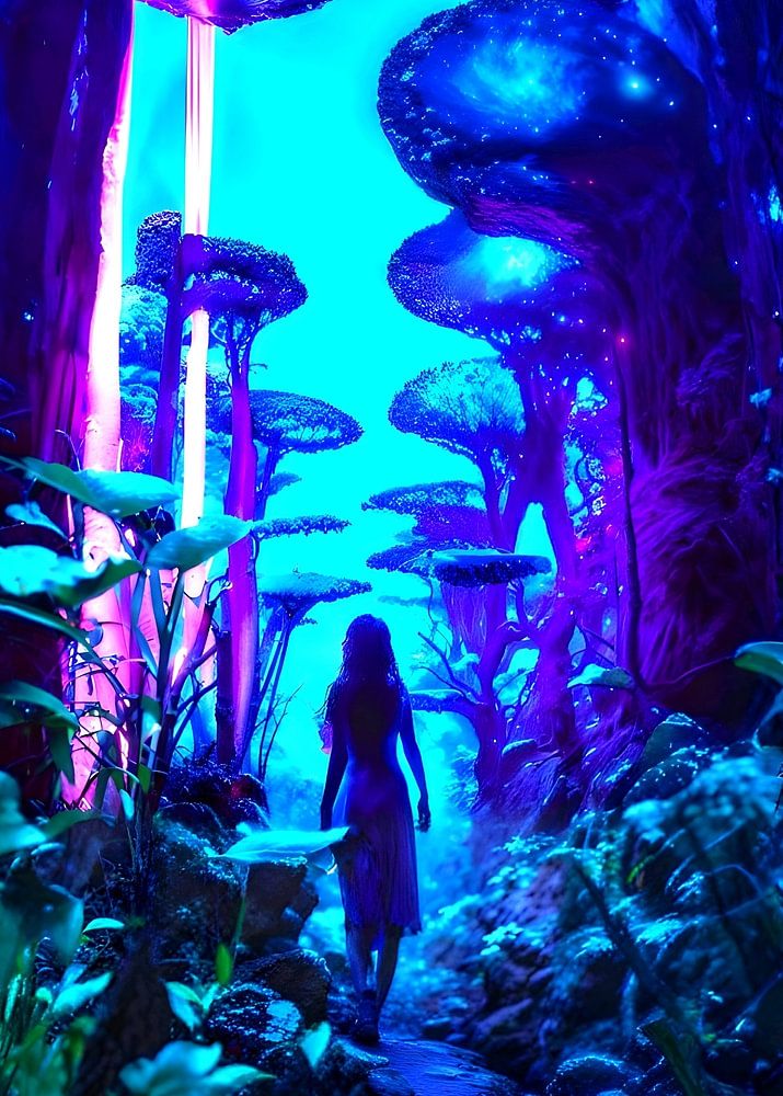 Buy this digital art artwork Woman the jungle blue by Kosan Can as a reproduction on canvas, ArtFrame, poster and wallpaper, printed on demand in high quality.