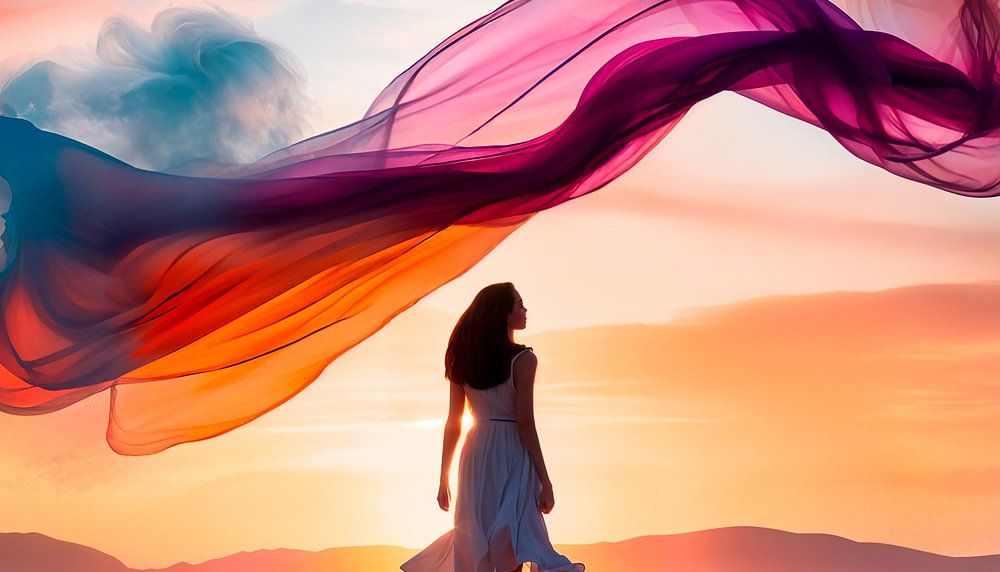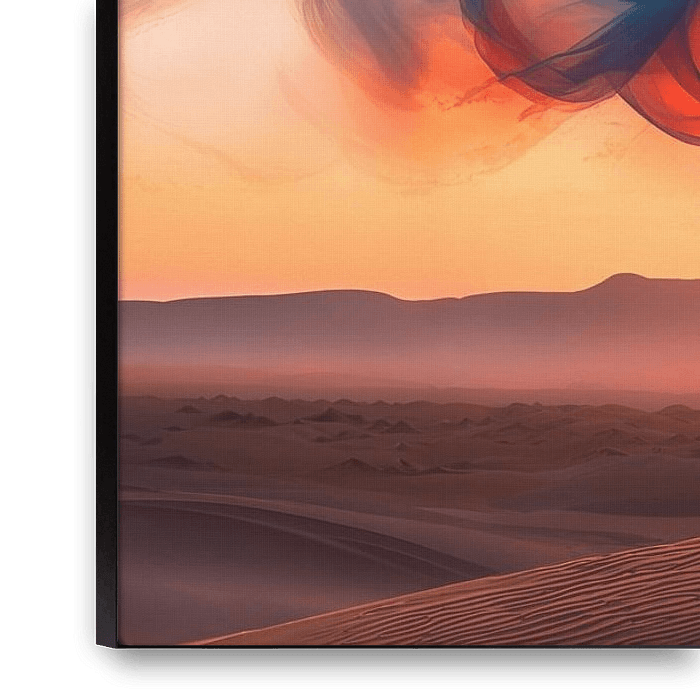 Buy this landscape artwork Woman with coloured silk in the desert by Mustafa Kurnaz on canvas, ArtFrame, poster and wallpaper, printed on demand in high quality.