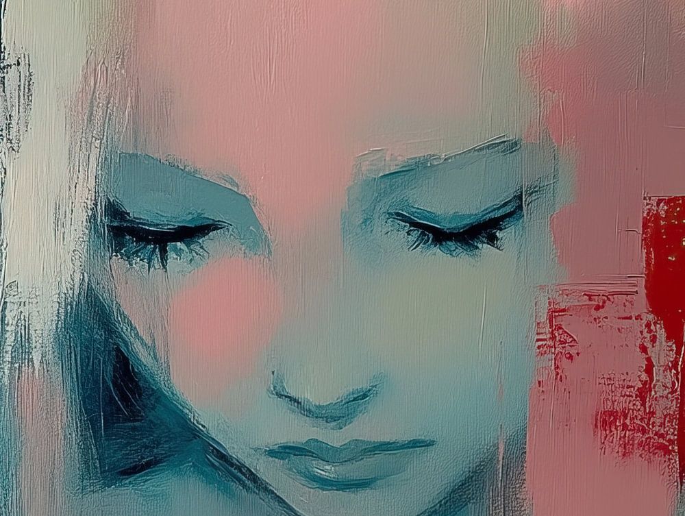 Details: woman, portrait, abstract, face, serenity, art, modern, pastel, canvas, emotion