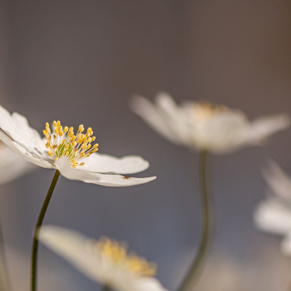 Nature photo of lovely wood anemones in the sun in the forest before the tree leaves appear. they are always early. (Anemona Nemososa)