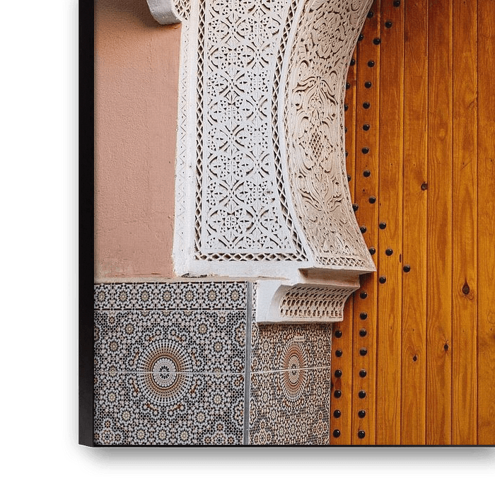 Buy the photo Wooden door with mosaic Marrakech Morocco by Wianda Bongen on canvas, ArtFrame, poster and wallpaper, printed on demand in high quality.