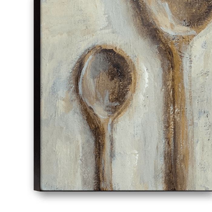 Abstract painting of four wooden ladles. Beautiful colors with sand, beige, brown and white. The painting of the wooden spoons fits nicely in a kitchen or a restaurant.
