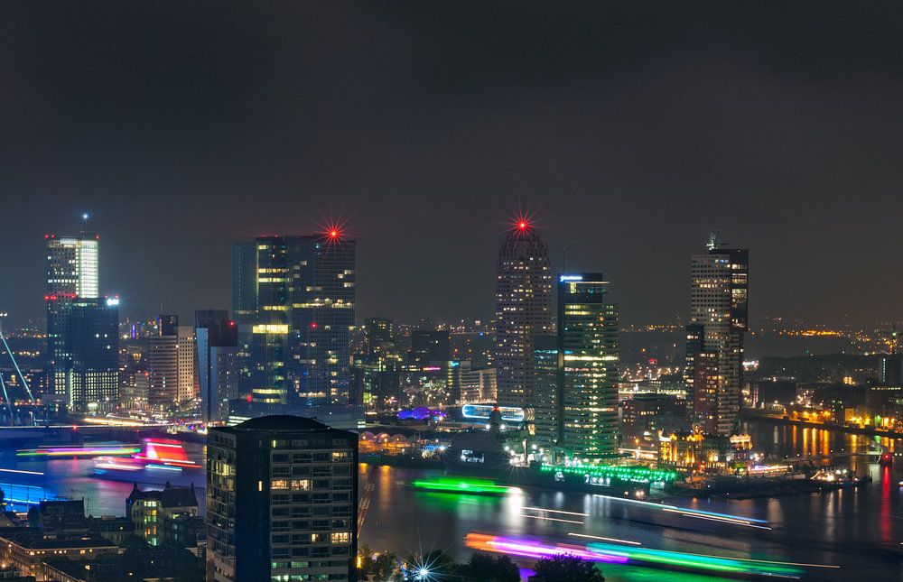 The spectacular evening programme of World Port Days 2014 as seen from the Euromast. Numerous illuminated boats join in and sail around in a show of light and sound between Willemskade, Erasmusbrug and Wilhelminakade. Enjoy!