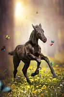 Femke has managed to escape her mom's attention for a moment and gallops through the yellow flower fields. She always feels so happy when all those butterflies flutter up as she gallops right through the flowers!