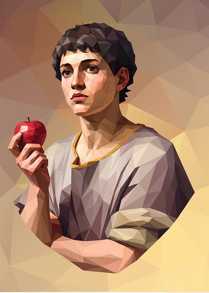 Young Man with an Apple (style Lowpoly) inspiration from a painting by Raphael in (c. 1505)