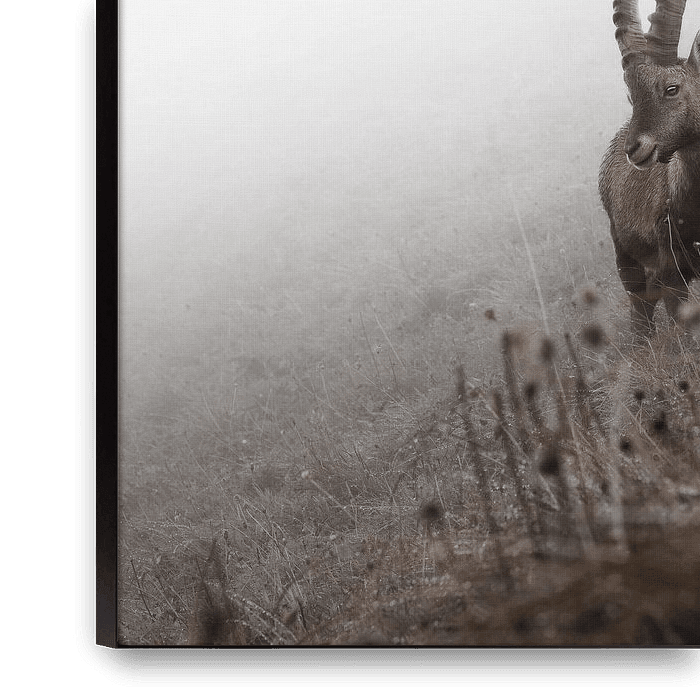 Buy this landscape artwork Young ibex in the mountains | wildlife photography | Switzerland by Laura Dijkslag on canvas, ArtFrame, poster and wallpaper, printed on demand in high quality.