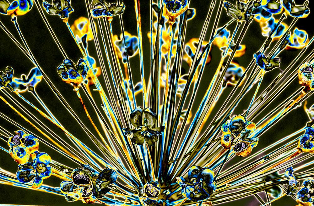 Zaaddozen van ui, kunstzinnig uitgebeeld na solarisatie