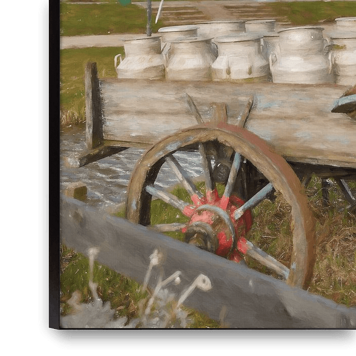 Buy this digital art artwork Zaanse Schans Milk cans on cart by Rob van der Teen as a reproduction on canvas, ArtFrame, poster and wallpaper, printed on demand in high quality.