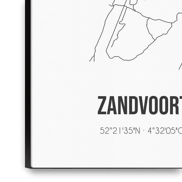 Buy this abstract artwork Zandvoort (Noord-Holland) | Map | Black and White by Prints of Place on canvas, ArtFrame, poster and wallpaper, printed on demand in high quality.