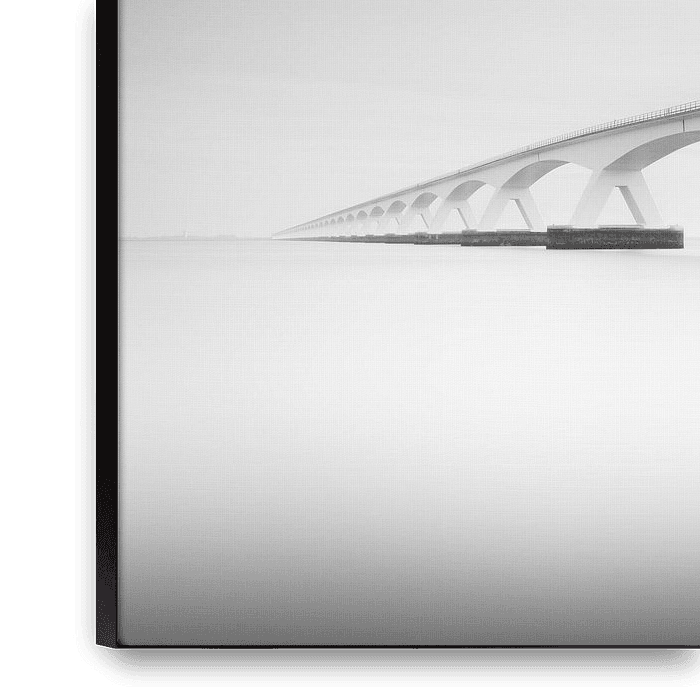 Buy this landscape artwork Zeeland Bridge in black and white by Anne-Marie Boere on canvas, ArtFrame, poster and wallpaper, printed on demand in high quality.