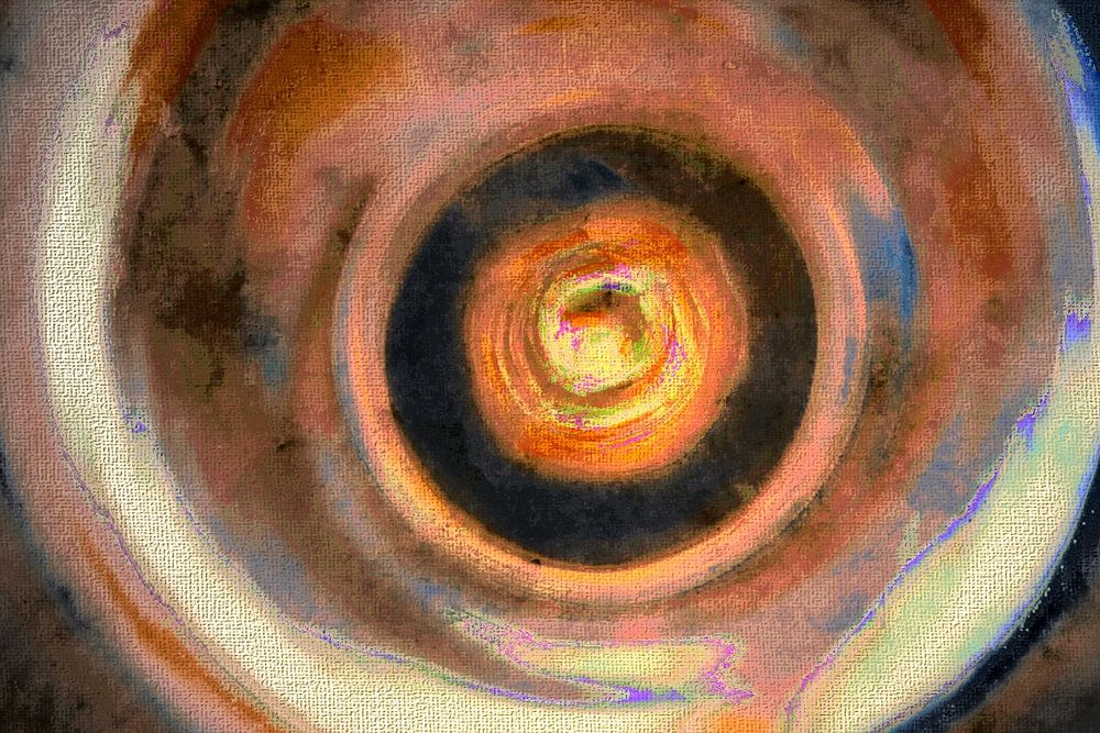 Zen Circles: An abstract painting of circular geometric shapes in warm earthy grey colours such as brown, beige, cream, gold, copper, terracotta, ivory, peach and others.