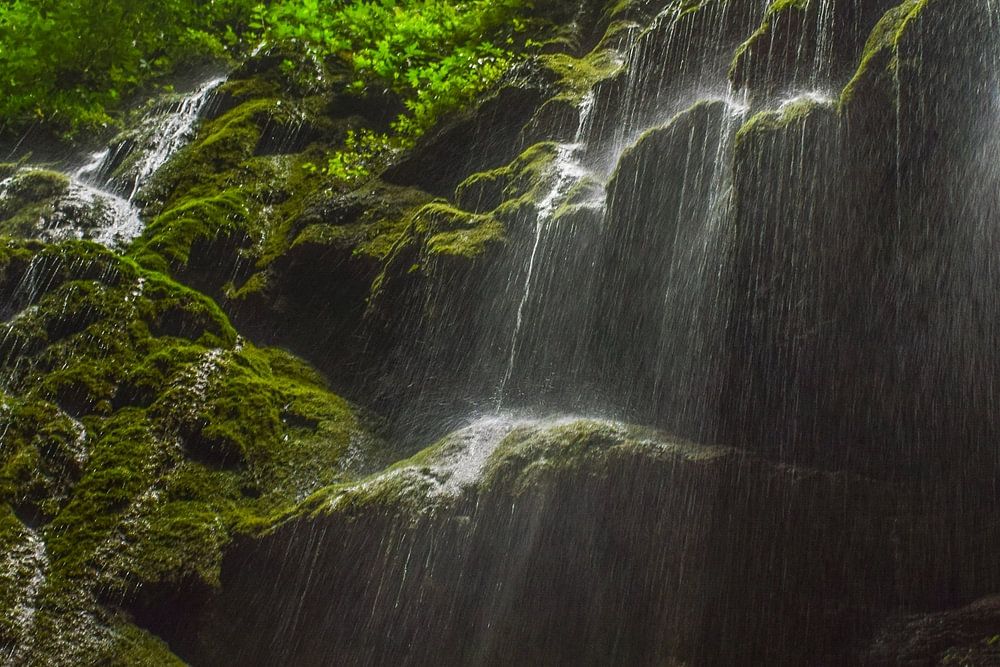 A waterfall in a narrow subtropical gorge near the city of Zhangjiajie, China.