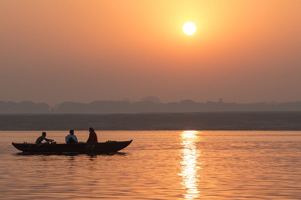 Zonsopgang in India, heilige rivier de Ganges by Hannie Heere