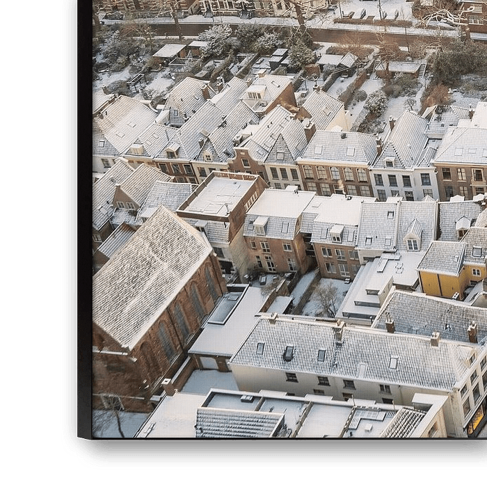 Zwolle Sassenpoort old gate during a cold winter morning with snow on the rooftops in the downtown district seen from above. The Sassenpoort was constructed in the 14th century, specifically between 1406 and 1409, and served as one of the main entrances to the fortified city of Zwolle. It was built as part of the city's defensive walls and was primarily used to control access into the city, as well as to protect its inhabitants from potential threats.The gate's name, "Sassenpoort," translates to "Saxon Gate" in English, which refers to the merchants from the Saxon region who would pass through this entrance into the city. The Sassenpoort was strategically positioned at a crucial location along the city's defensive walls, connecting the city center with the region to the east.Architecturally, the Sassenpoort is an impressive example of Gothic brickwork. It features a rectangular shape with a height of approximately 38 meters (124 feet) and a width of around 20 meters (66 feet). The gate is adorned with decorative elements, including spires, battlements, and turrets, which give it a distinctive and imposing appearance.