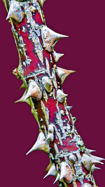 Buy this flower art a rose stem with large thorns by Werner Lehmann on canvas, ArtFrame, poster and wallpaper, printed on demand in high quality.