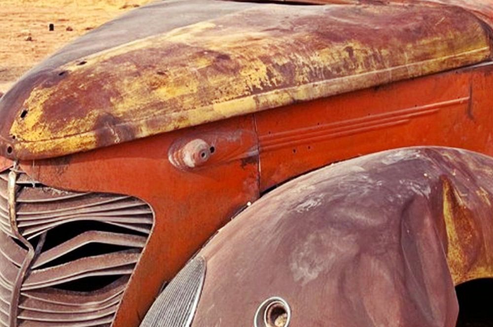 Buy the photo an American classic car wreck in the desert by Werner Lehmann on canvas, ArtFrame, poster and wallpaper, printed on demand in high quality.